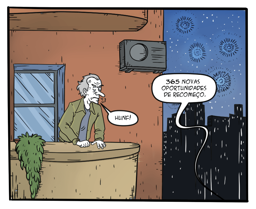 Pelo menos, aquela noite já estava garantida – pensei. A ceia e os fogos haviam se passado, era chegada a hora de dormir. Quando acordasse, talvez a claridade da manhã de um novo dia efetivamente estabelecesse um senso de responsabilidade pessoal para com o novo ano.