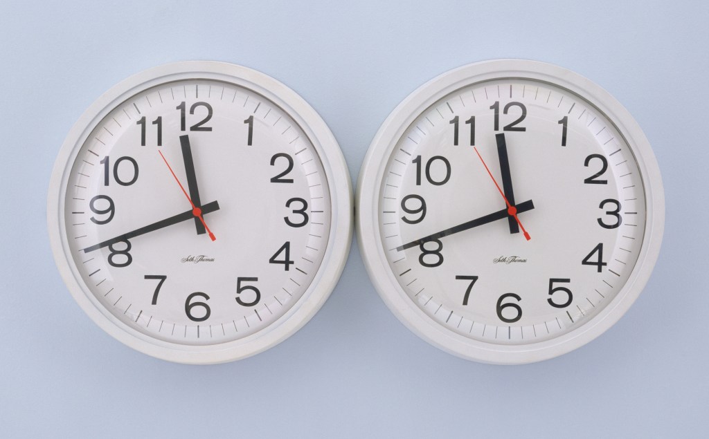 Existem mais de uma versão da obra que consiste de dois relógios de parede que, no início da exposição, são acertados para estarem sincronizados em horas, minutos e segundos.