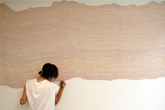 Exemplo de arte instrucional, “Desenho de parede #797” é dos muitos projetos concebidos para paredes pelo artista conceitual Sol LeWitt.