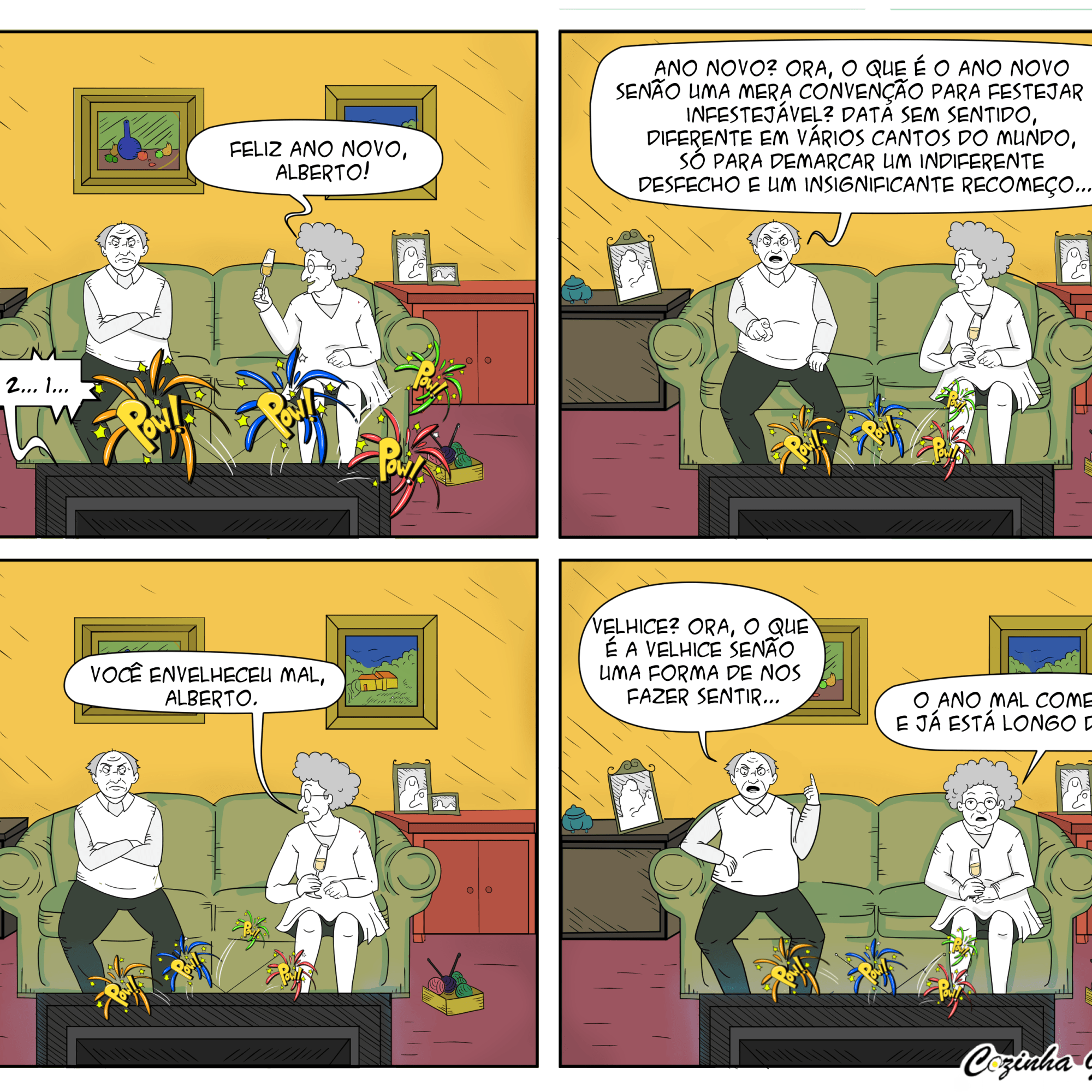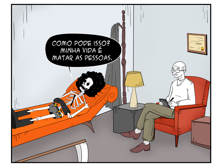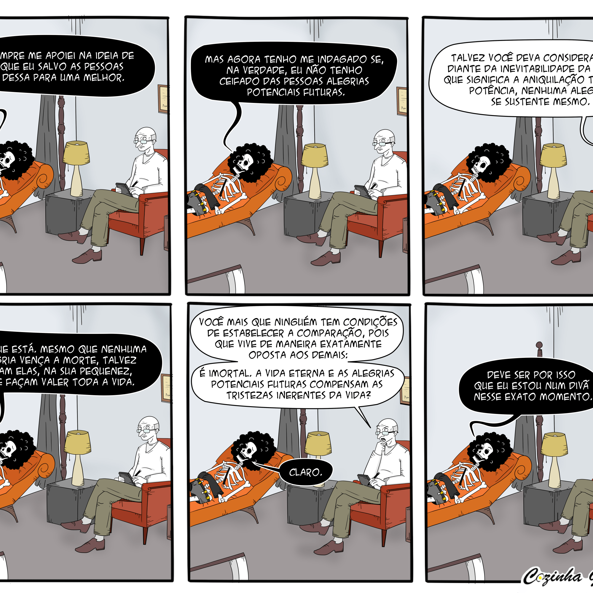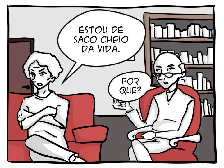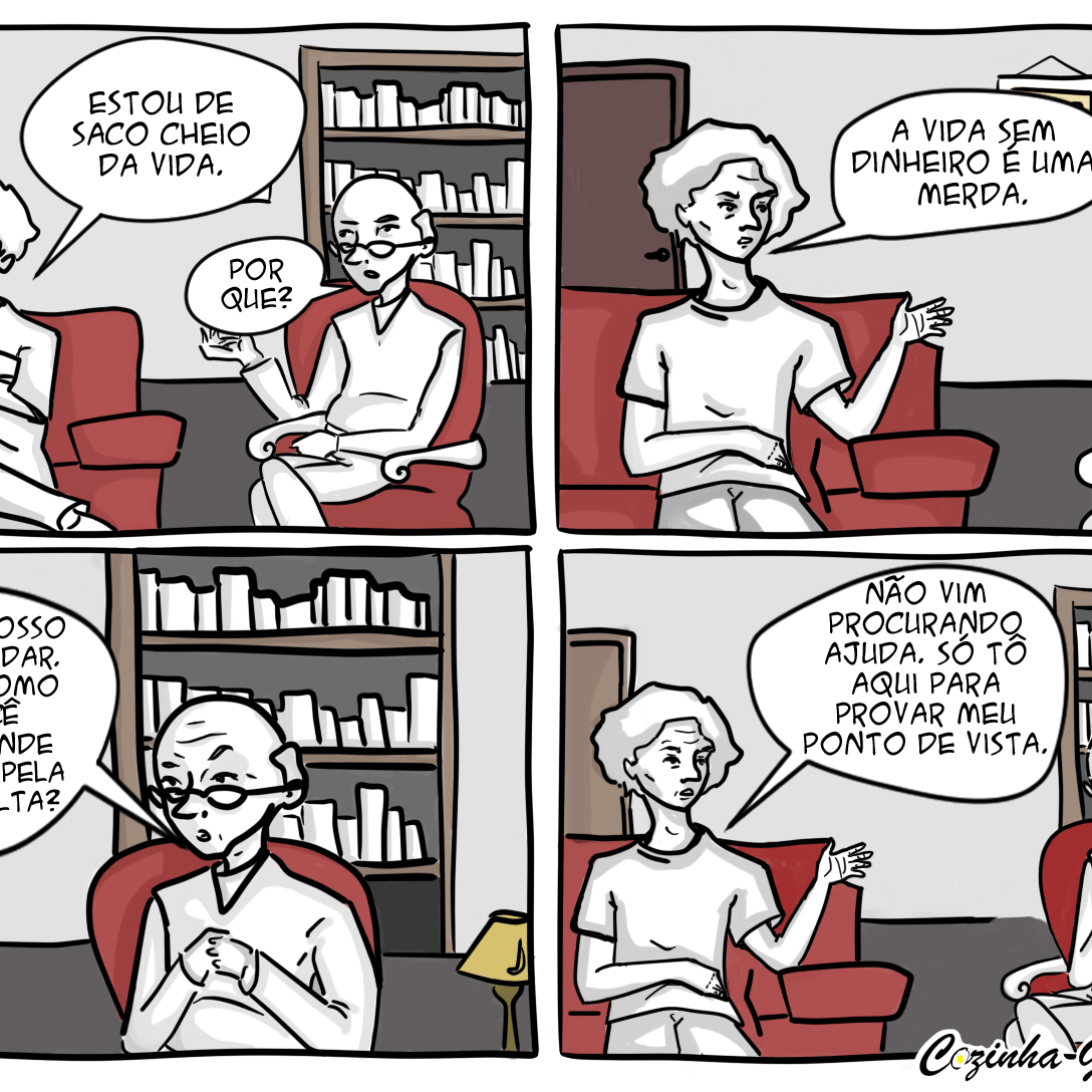 Comparação entre a primeira tirinha produzida, que trouxe também a primeira aparição do psicanalista, e a mais recente tirinha com o personagem: