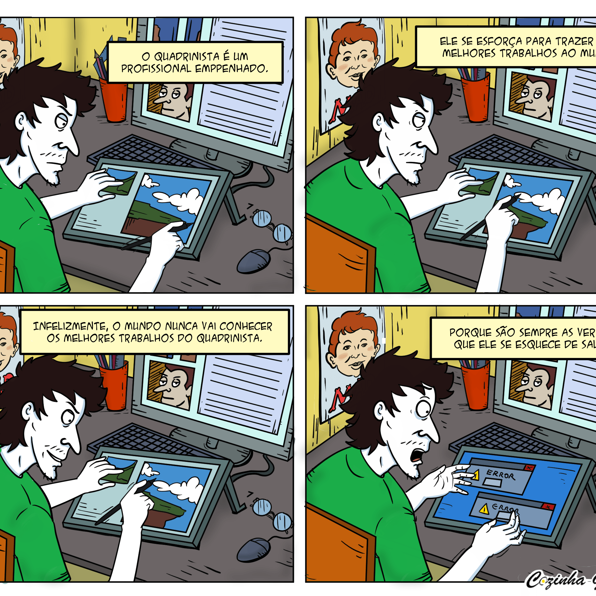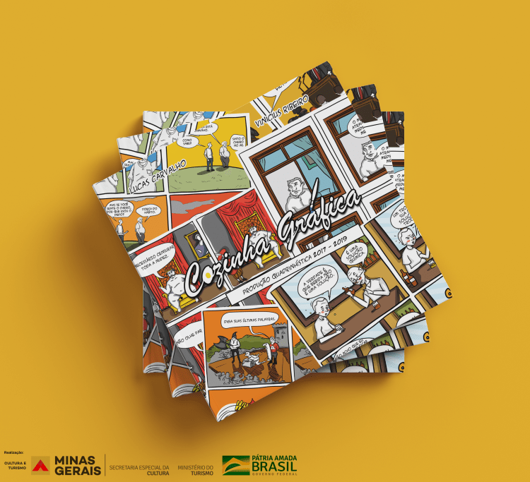 O livro “Cozinha Gráfica: produção quadrinhística 2017 – 2019” reúne as mais de 100 tirinhas publicadas nos três primeiros anos do projeto + 1 história inédita de 9 páginas + 1 artigo sobre produção em quadrinhos em coautoria. Clique na imagem para saber mais.