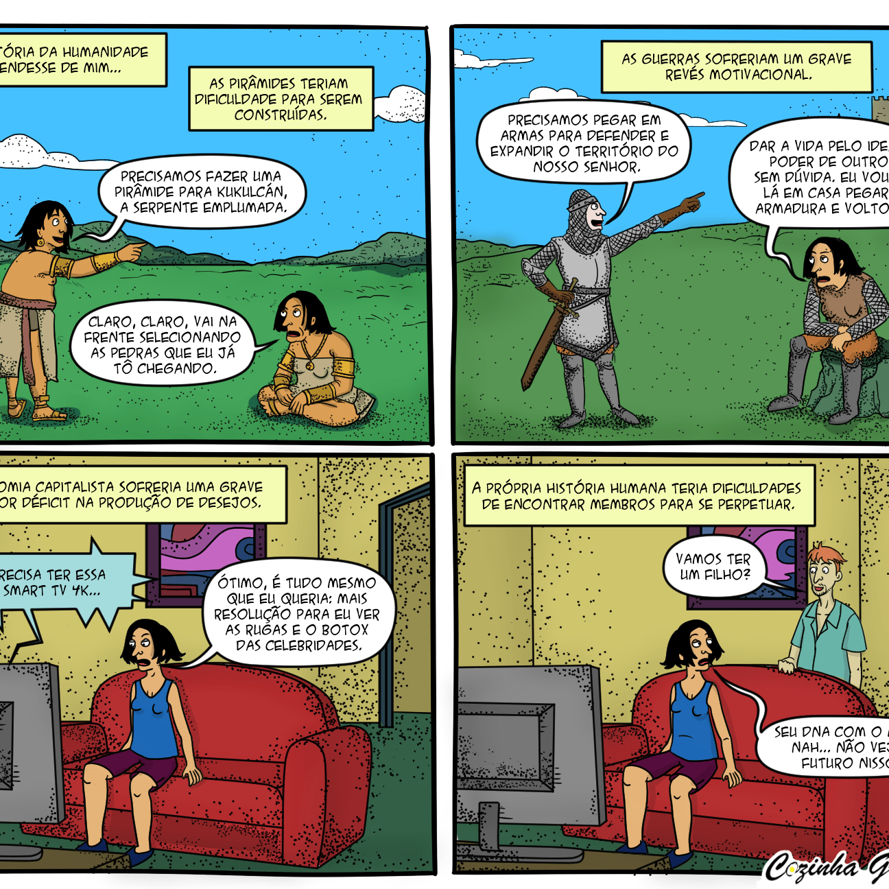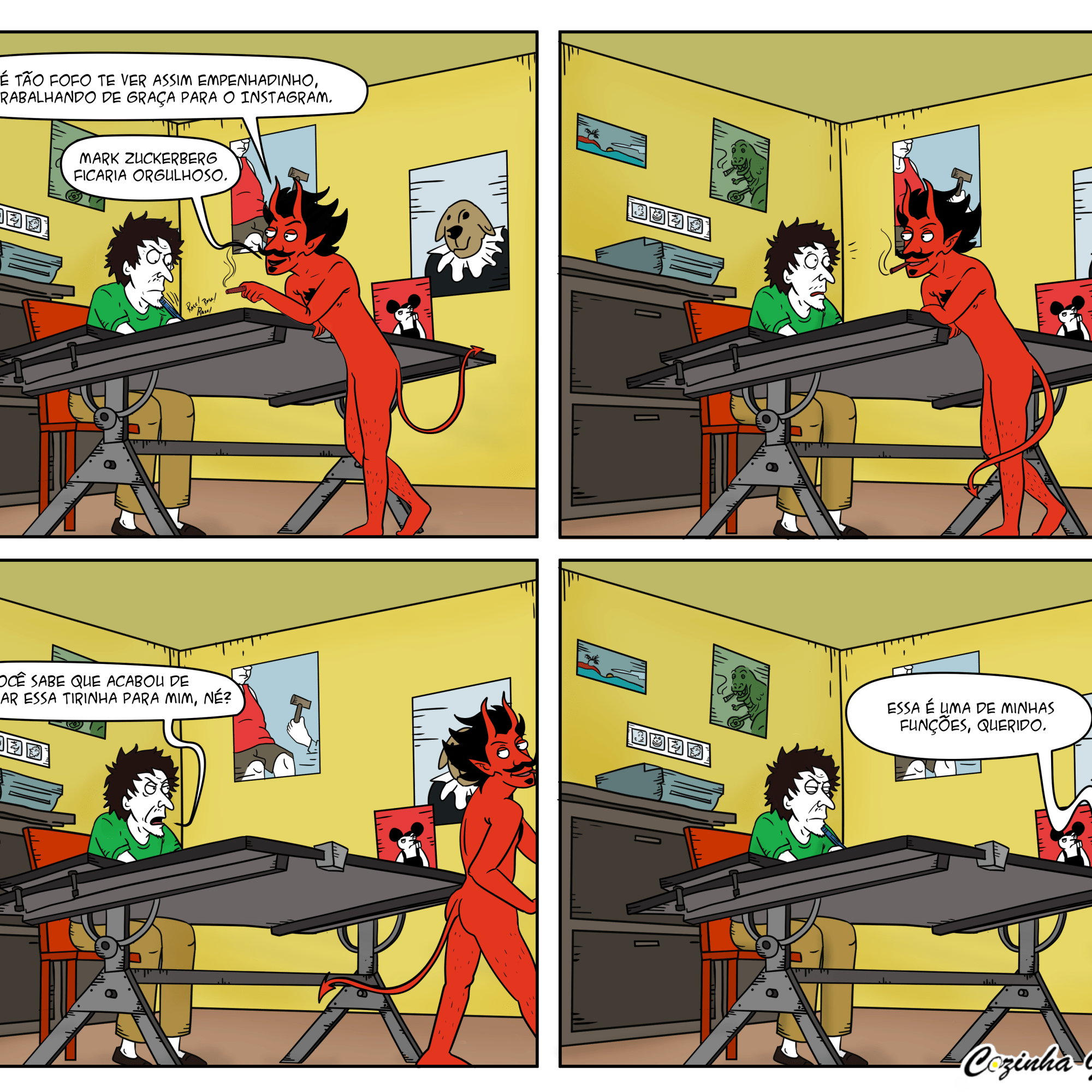 Clicando nos ícones ou nas imagens acima, você irá acessar nossas redes sociais que recebem semanalmente novas tirinhas.