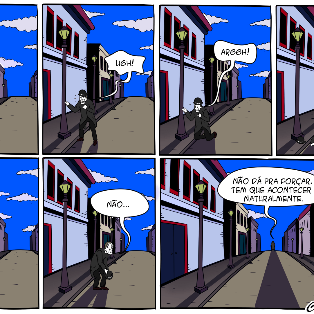 A Pesquisa em Artes é aquela que se perfaz na prática. Numa produção em quadrinhos continuada, cada nova tirinha não apenas conta a história desenhada, mas também é um quadro da história do próprio processo de pesquisa. Quando colocados em comparação, como na imagem abaixo, esses quadros evidenciam um percurso artístico e seu desenvolvimento sequencial.